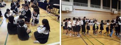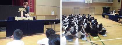 10月23日(月)3・4年生がパペットプレイワークに取り組んでいました。劇団クラルテの方から演劇のメソッドを使って、表現することの楽しさやコミュニケーション力を育てることを目的にした学習をしてもらいました。まず、模範として劇団の方の人形劇を見ました。その後、タオルで動物の形を子ども達一人一人が作り、それを使って即興劇をしました。みんな恥ずかしそうでしたが、頑張りました。
