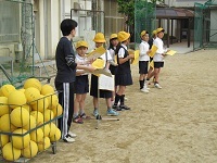 高学年の子どもたちがどう低学年の子どもたちに合わせてあげるかがポイントです。途中、少し雨が降りましたが、みんな楽しくゲームができました。