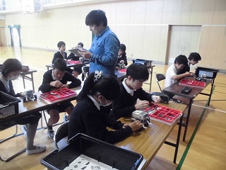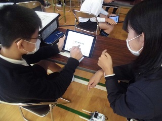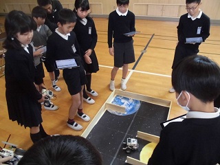 11月7日(火)ミマモルメの方4名に来ていただき、6年生がプログラボ体験学習をしました。最初に、DVDを鑑賞し、学習意欲を高めた後、部品を組み立ててオリジナルロボットを作りました。次に、タブレットPCを使い、ロボットを動かすプログラミングを友達と考えました。最後に、仮想宇宙で地球から月、火星にロボットで行く道のりを試行錯誤で進めていきました。うまく火星にたどり着くと歓声が上がりました。