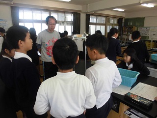 5年生は、理科で「ふりこのきまり」の学習をしています。ふりこが1往復する時間のきまりをみつける実験をしました。グループごとたてた実験計画をもとに、実験結果を予想し、協力して実験をすることができていました。