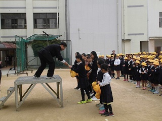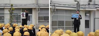 11月20日(月)曇り空で少し寒さを感じながらの朝会でした。今日の人物は、「ワンガリ・マータイ」さんでした。ケニア生まれの女性で、環境問題に取り組み、森林保護活動に力を注いだことをまず話しました。女性の権利を向上させるためにも活躍し、2004年にノーベル平和賞を受賞したことも言いました。環境に関する国際会議が京都で行われたときに、日本語の「MOTTAINAI(もったいない)」という言葉に出会い、環境への取り組みにピッタリ合う、その言葉を広めながら平和活動を進めたことを話しました。最後に、自分たちの生活の中にも「MOTTAINAI(もったいない)」ことがないか考え、資源を大切に使うようにしてほしいことを伝えました。次に、将棋大会やキックベースボール大会で優秀な成績を収めた子ども達を表彰しました。