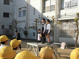 11月27日(月)今日の朝会は暖かい日差しを受けながら始まりました。今週は「ベートーベン」を紹介しました。ドイツのボンに生まれ、幼いころから家庭で熱心に音楽教育を受け、優れた才能を伸ばしていったこと。27歳ごろから音が聞き取れにくくなったこと。それでも優れた交響曲を作り続けたこと。モーツアルトやハイドンともにもっとも有名な作曲家の一人であることを話しました。次に、前日にソフトボールで優秀な成績を収めた子ども会のメンバーを表彰しました。最後に、来週から始まるあいさつ運動について児童会の代表から取組の話がありました。