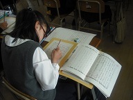 本校では、授業のはじめ5分間「視写活動」を行っています。教室の中では、「カッ、カッ、カッ」と鉛筆の音だけが響きます。どの子も200字程度の文章を正しくしかも早く書き写す学習に集中しています。「できました!」「3分10秒」・・次々に声があがります。「書く力」は勿論「集中力」もどんどんついてきています。(教頭 三木だより)