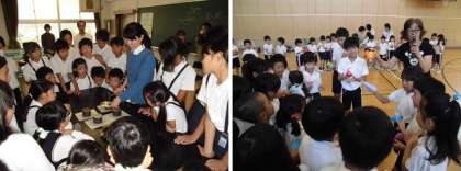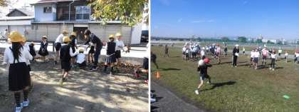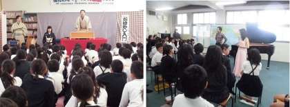運動会後の10月〜11月には、伝統工芸の大阪錫器や劇団クラルテ、ハートフル落語、ピアノクラスコンサートなど多くのゲストティーチャーが子ども達の学習のために来られました。また、地域の公園・道路の清掃やスマイル班の「淀川で遊ぼう」集会などにも取り組みました。みんなとても楽しいひと時を過ごしました。