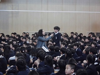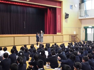 1月9日(火)第3学期の始業式を講堂で行いました。まず、転入生の紹介をしました。次に、冬休み中の生活を振り返りました。その後、3学期の目標について学習面・生活面・健康面の3点を考えました。自分から手を挙げて、個人の目標を考え答えてくれる子どもが何人かいました。「先生の話をしっかり聞きたい」「クラスの子を誘って遊びたい」「寒さに負けず運動にしっかり取り組みたい」など素晴らしい答えが返ってきました。50日余りの短い学期ですが、一人一人はやる気に満ちているように感じました。