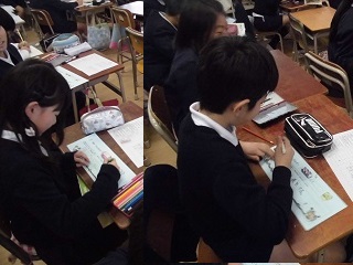 冬休みの課題の答え合わせをしたり、明日から始まる学力経年調査に向けた復習をしたり、新学期のめあてを紙に書いたりと、いろいろな取り組みが見られました。