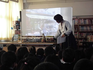 1月15日(月)5年生が、ソンセンニムから、韓国朝鮮の文化や、生野区のコリアタウンについての話を聞きました。なぜ、生野区にコリアタウンができたのか、日本と朝鮮半島との古くからのつながりなどわかりやすく教えていただきました。19日(金)5年生はコリアタウンにフィールドワークに出かけます。