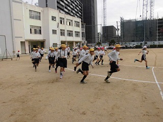 1月18日(木)今日からかけ足運動が始まりました。本来は昨日から開始の予定でしたが、雨のため今日がスタートとなりました。1時間目終了後の休み時間に実施します。今日は2.4.5年生が走りました。お天気が良く気温も高めで絶好のかけ足日和でした。かけ足をする日は火、木曜日が2.4.5年生、水、金曜日が1.3.6年生です。