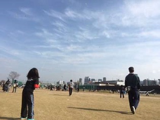 1月21日(日)福島区民たこあげ大会が淀川河川敷で行われました。冬晴れで適度に風もあり、たくさんの子どもたちが家族や地域の方々と一緒にたこあげを楽しみました。