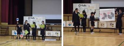 1月22日(月)6時間目、学校保健委員会がありました。4.5.6年生と先生方、校医先生方、保護者の方が参加しました。今年のテーマは、「目をたいせつにしよう」です。健康委員会の児童が、目の働きや役目について発表しました。映像や、グラフを使って説明したり、○×クイズがあったり、目の疲れをとる体操を全員でやってみたりと、とても楽しくわかりやすい発表でした。最後に校医先生方からのお話を伺いました。みんな、目の大切さについて再確認できたことと思います。