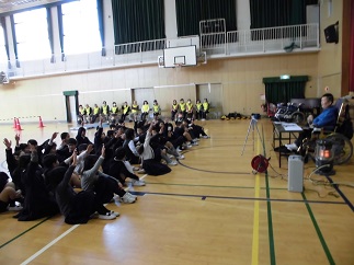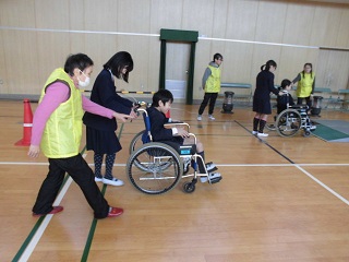 1月23日(火)4年生が福島区の社会福祉協議会とボランティアの方々に来ていただき、福祉に関する学習をしました。まず、車いすを利用されている方からお話やクイズをしてもらい、障がいのある方の思いを聞きました。その後、3つのグループに分かれ、車いす体験と高齢者疑似体験、アイマスク体験をしました。とてもよい勉強になったようです。