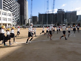 かけ足運動が始まって1週間たちました。雨で中止の日もありましたが、今日はよいお天気のもと、かけ足をすることができました。1.3.6年生が、寒さにまけず元気に走っていました。
