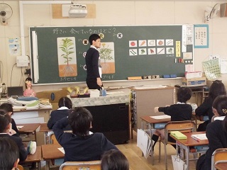 1月25日(木)3年生の食育指導がありました。学習した内容は「野さい、食べているのはどこ?」でした。日頃家庭や給食で食べているいろいろな野菜は、その植物の「花」「葉」「茎」「根」「実」のどの部分なのか考えました。これはなかなかの難問でした。答え合わせをして、初めて知ったこともたくさんあったようです。最後に、野菜は体の調子を整える働きがあることを学びました。