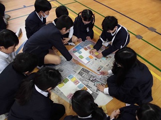 児童集会で6年生に3月8日の「卒業を祝う会」でプレゼントする寄せ書きづくりをしました。スマイル班で一緒に活動した6年生のリーダーや副リーダーに感謝の気持ちを表すために、1〜5年生がそれぞれの思いを書いた紙を1枚の台紙に貼っていました。