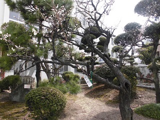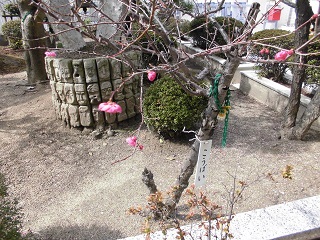 学校の玄関は白梅や紅梅が花を咲かせています。