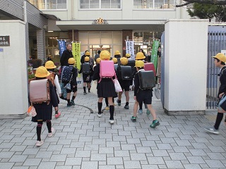正門にのぼりを持って立たれ、登校してきた子ども達に「おはよう!」と声をかけると、子ども達も元気よく「おはようございます!!」と返していました。