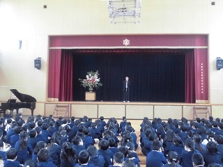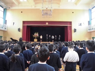 始業式では、「みんなで力を合わせ、やる気いっぱいの楽しい学校をつくろう」という目標などを発表し、新学年で助け合って楽しい学級を作っていくよう話しました。