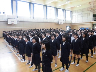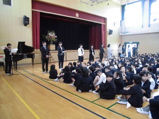 担当の職員を一人ずつ紹介して、校歌を歌って終わりました。