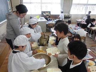 2年生も手際よく配膳をして、「いただきまーす!」。