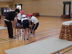 4月20日(金)6時間目、5年生が体育で跳び箱運動をしました。タブレットで、跳ぶ様子を撮影しました。友達同士で映像を見てフォームを確認し、安全に美しく跳べるように、アドバイスをし合いました。