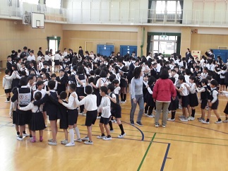 集会委員会が主催する集会は本年度初めてで、ゲームは「じゃんけん列車」でした。集会委員が緊張しながら、司会やルール説明をしました。