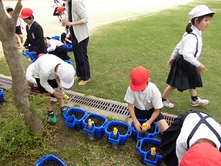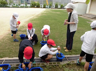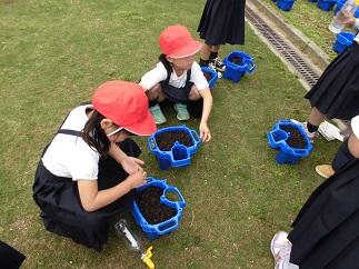 5月8日(火)1年生が、あさがおの種を植えていました。