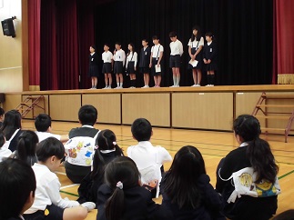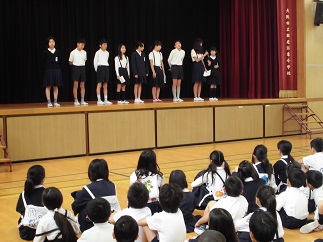 それぞれの委員会の代表の児童が、活動内容の概要やお願いを話しました。聞いている児童もどんな活動をしているか少しわかったようです。