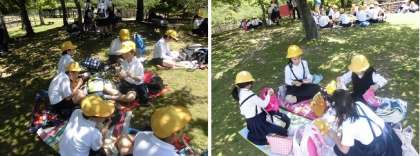 次に、広々とした芝生の春日野園地で仲よくお弁当を食べました。