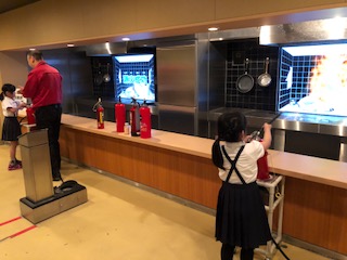 5月15日(火)3年生が「阿倍野防災センター」「あべのハルカス」へ社会見学に行きました。午前中は、防災センターで防災についての体験学習をしました。起震車に乗って、阪神淡路大震災の時の揺れと、近いうちに起こるであろうといわれている南海トラフ地震の震度を想定した揺れを体験しました。想像以上の揺れの強さに、みんな驚き、地震の怖さを実感したようでした。ほかにも、水消火器を使っての初期消火訓練や、火災時の119番通報の仕方を体験しました。