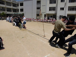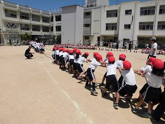 6月2日(土)3時間目に子どもたちや保護者の皆様も参加して、PTA主催のふれあいスポーツ大会(綱引き)がありました。会長様の挨拶の後、まず子どもたち同士の対戦があり、その後保護者の方々での対戦も行われ、熱戦が繰り広げられました。