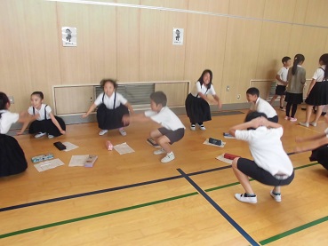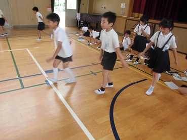 これは、なわとびと、ペンギン歩き・スクワットのようすです。