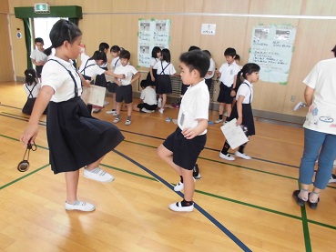 子どもたちは挑戦したい種目を選んで、2・3人組になって頑張っています。