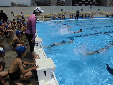 6月26日(火)朝から夏の太陽の光が降り注ぐ中、3・4年生がプール水泳をしていました。