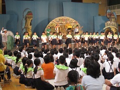本校では、4年生児童が事前のワークショップに参加し練習してきました。本番の劇にも見事に参加し、みんなを楽しませてくれました。「本物の友情は、心と体のぶつかり合いから生まれる!」サトシとリョウタの二人の友情を通して多くのことを学んでくれたと思います。劇団の皆様に感謝いたします。ありがとうございました。