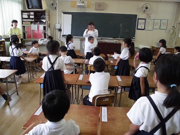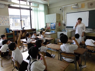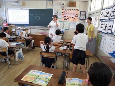 新しくマリア先生に来ていただき、1・3年生の英語の学習をお手伝いしていただきました。1年生は1〜20までの数の言い方を、3年生はスポーツの言い方と好きなスポーツの聞き方を教えていただきました。