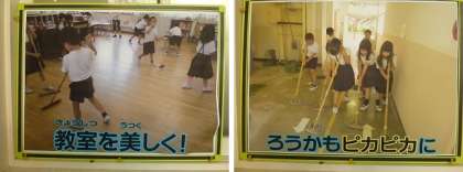 今週の写真は学校でのそうじの一場面で、これについてお話をしました。そうじの大切さを考え、みんなで協力して美しい学校にしていってほしいと言いました。