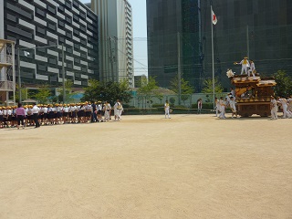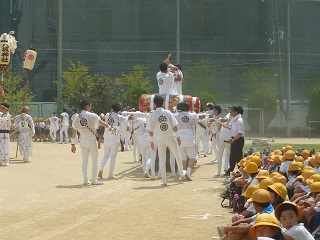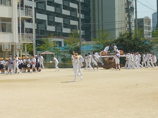 本校にも2時間目に北之町の枕太鼓と東之町のだんじりが入ってきました。