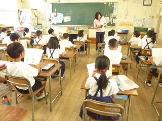 今日から本格的に学習が始まりました。冷房の効いた教室で、2年生も国語や算数の学習に頑張っていました。