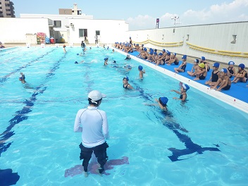 昨日からプール水泳が始まっています。1・2年生も1学期に学習したことを生かし、水の中で浮いたり、沈んだりいろいろな動きを楽しんでいます。