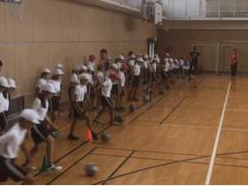 9月7日(金)トップアスリート「夢・授業」でセレッソ大阪のコーチが4名来られ、5・6年生にサッカーの基本を教えてもらいました。朝からの雨で体育館での開催になりましたが、上手なドリブルの仕方を学んだり、ゲーム形式で楽しんだりしました。