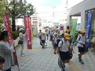 早朝より、保護者の方が約10名集まっていただきました。子どもたちに「おはよう!」と声をかけていただき、子どもたちも、元気に「おはようございます。」と返していました。