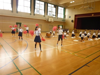 9月14日(金)応援団の4・5・6年生が、放課後に体育館で練習していました。