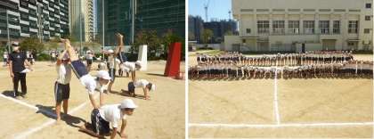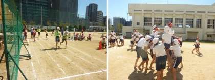 5・6年生は、個人走やリレー、団体競技の「騎馬戦」、団体演技の「組体操」を行いました。