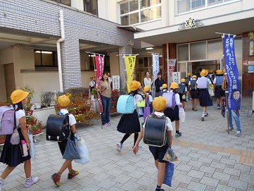 今日も早朝より、保護者の方約8名集まっていただきました。3連休明けで少し元気がなかった子どもたちでしたが、「おはよう!」と気持ちの良い声をかけていただき、元気が出たようです。「おはようございます。」と元気よくあいさつを返していました。