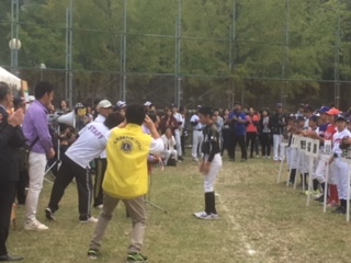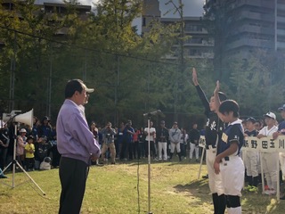 10月14日(日)大阪福島ライオンズクラブ杯のキックベースボール・ソフトボール大会が下福島グラウンドで開催されました。開会式では、海東子ども会の子ども達も元気に行進し、優勝杯の返還や選手宣誓を行いました。