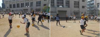 2と3時間目の間の15分休憩と昼休みに、運動場と体育館に分かれて、体力向上のために行う活動です。