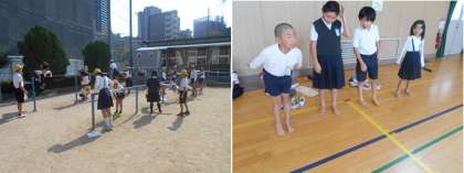 ボールつきやなわとび、鉄棒、いもむし歩き、バランス、スクワットなど全部で8種目あります。26日まで自己記録の更新をめざして頑張りましょう!