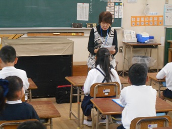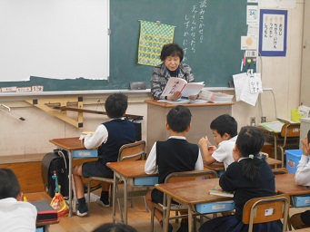 10月24日(水)始業前の10分間の読書タイムに、ボランティアの方が来ていただき、本の読み聞かせを行いました。