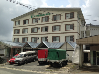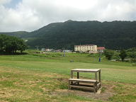 11時30分ごろ、全員無事に宿舎の白樺館に到着しました。みんな体調も大丈夫です。白樺館の全館と宿舎前から見た美しい高原の様子です。早速、開舎式が始まりました。これからの3日間、楽しい思い出いっぱい作ってね。教頭先生うらやましいです。(教頭のつぶやきより)
