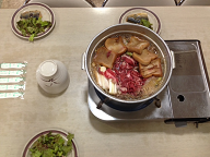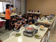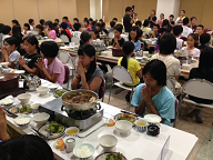 活動した後は、いよいよ夕食の時間です。今日の夕食は、豪華なすき焼きです。まじめに先生の言うことを聞いてるようですね。早く食べた〜い。では、いただきま〜す!いっぱい食べてくださいね。(教頭のすぶやきより)